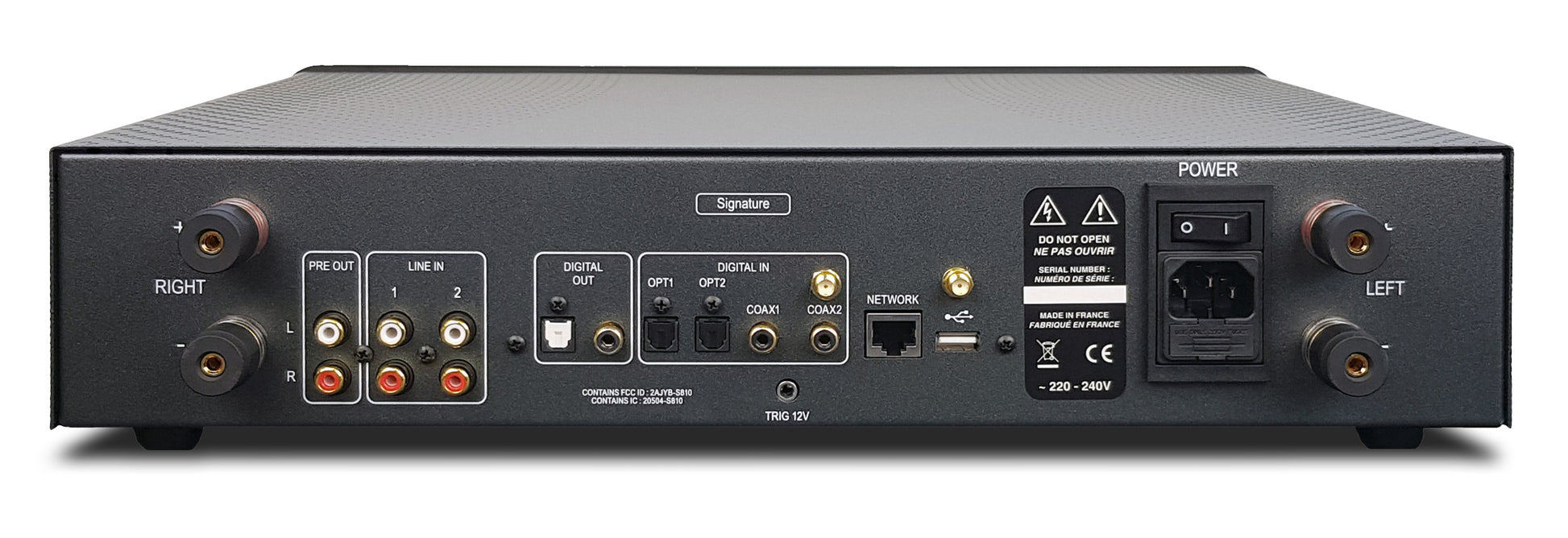 Neben diesen modernen Funktionen fungiert das Gerät gleichzeitig als Schaltzentrale Ihrer gesamten Hi-Fi-Anlage. Zwei analoge Eingänge für klassische Geräte, zwei optische und zwei coaxiale Digitaleingänge stellen sicher, dass kein Gerät außen vor bleibt.