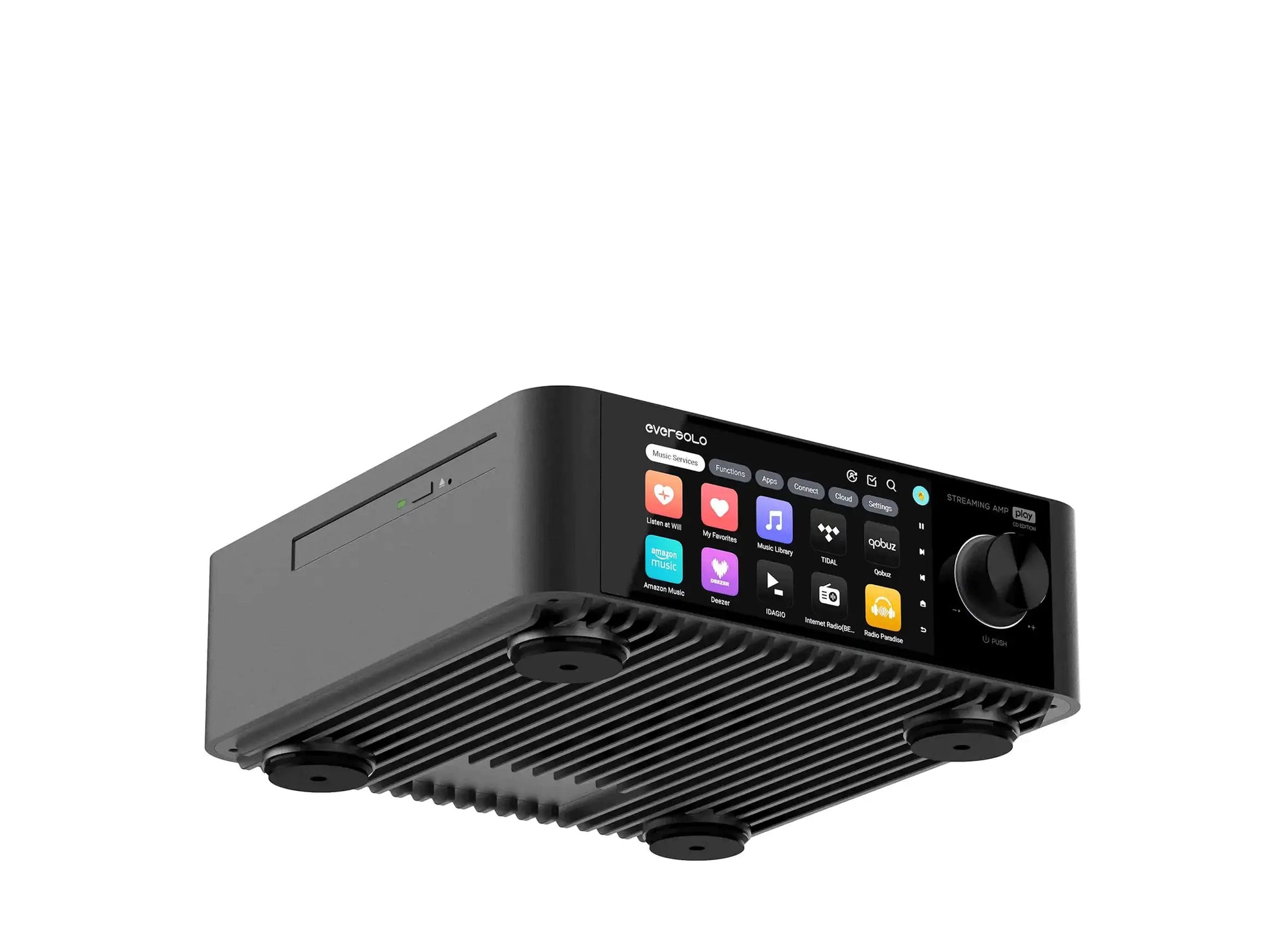 Die Eversolo-eigene Engine umgeht die Android-typische Sample-Rate-Beschränkung (SRC), sodass sowohl lokale Dateien als auch Streams – etwa von Apple Music – in originaler Auflösung abgespielt werden.