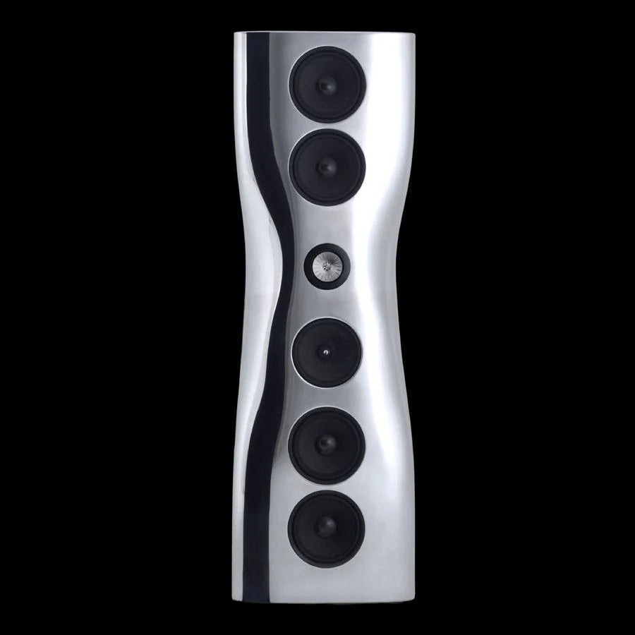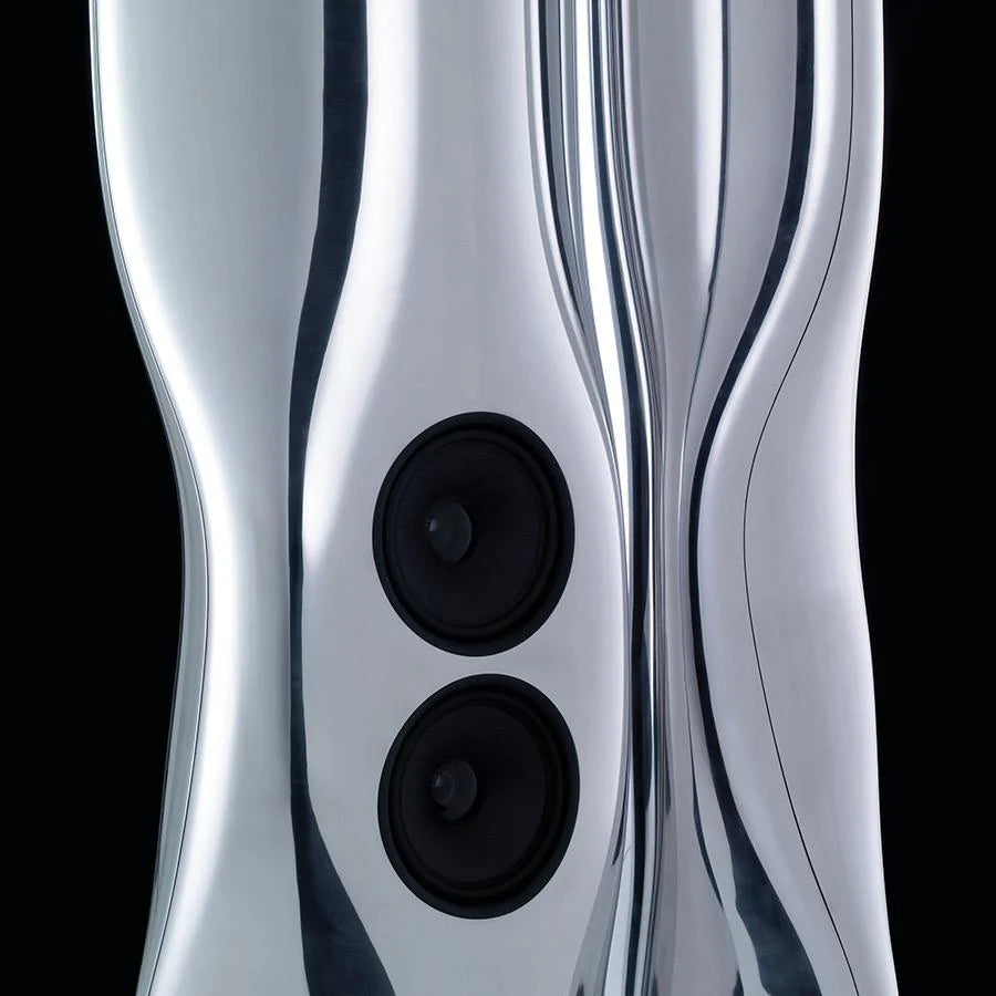 Das MUON-Projekt ist zweifellos ein visionäres Unterfangen. Die Aufgabe des renommierten Designers Ross Lovegrove bestand darin, feinste akustische Ingenieurskunst in eine skulpturale Form zu bringen – eine Synthese aus Ästhetik, Funktionalität und höchster Fertigungspräzision. Gefertigt aus supergeformtem Aluminium, besticht MUON durch eine fließende, kantenlose Silhouette und eine außergewöhnliche strukturelle Steifigkeit.
